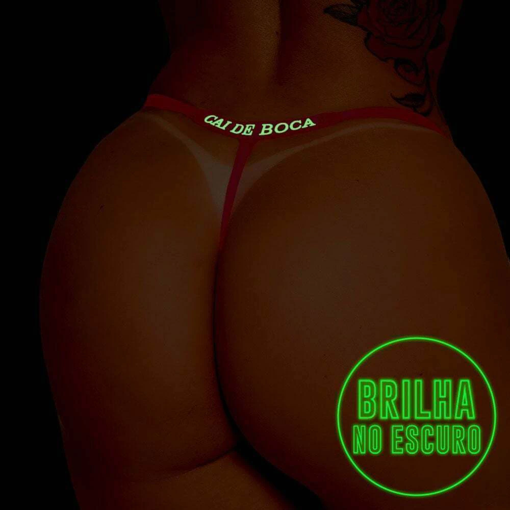 Frase em Borracha com Brilho no Escuro: A frase localizada na parte traseira da calcinha cria um efeito único, perfeito para momentos íntimos e especiais.