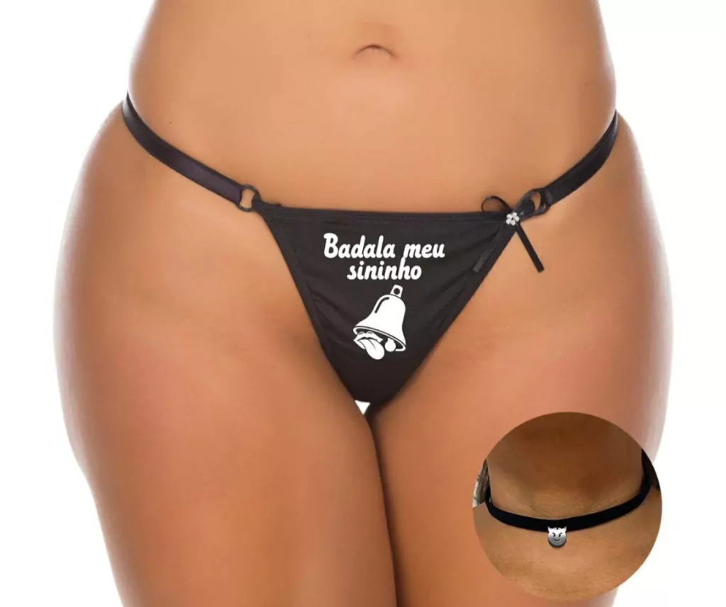 Design: Frase de efeito "Badala Meu Sininho" na parte da frente da calcinha, adicionando um toque provocante e divertido.