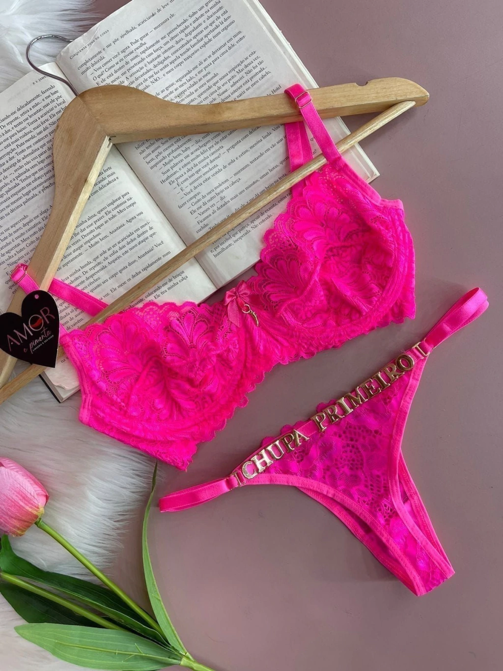 Conjunto em renda com opção para personalizar.