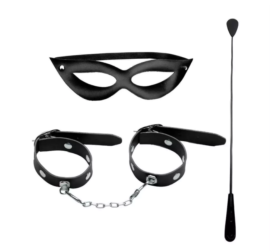 Kit Tiazinha Trio - Exploração e Sedução Intensa. O Kit Tiazinha Trio é perfeito para casais que desejam adicionar um toque de mistério, sedução e até um pouco de dominação em suas experiências íntimas. Este conjunto sensual inclui uma máscara, uma chibata e algemas bracelete finas, todos confeccionados em couro sintético de alta qualidade, proporcionando momentos de excitação e prazer.