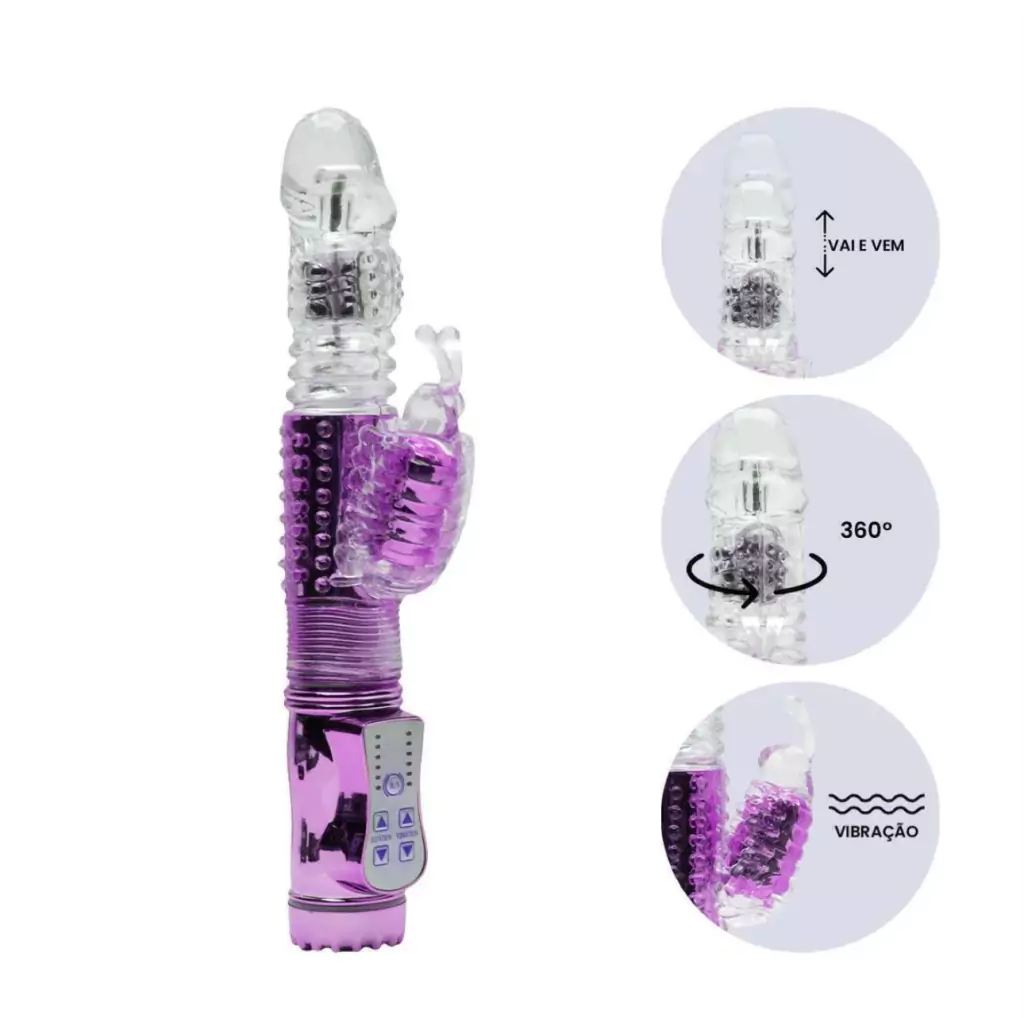 Estimulador Clitoriano Borboleta: O estimulador externo em formato de borboleta vibra diretamente no clitóris, potencializando o prazer e facilitando a obtenção de orgasmos rápidos.