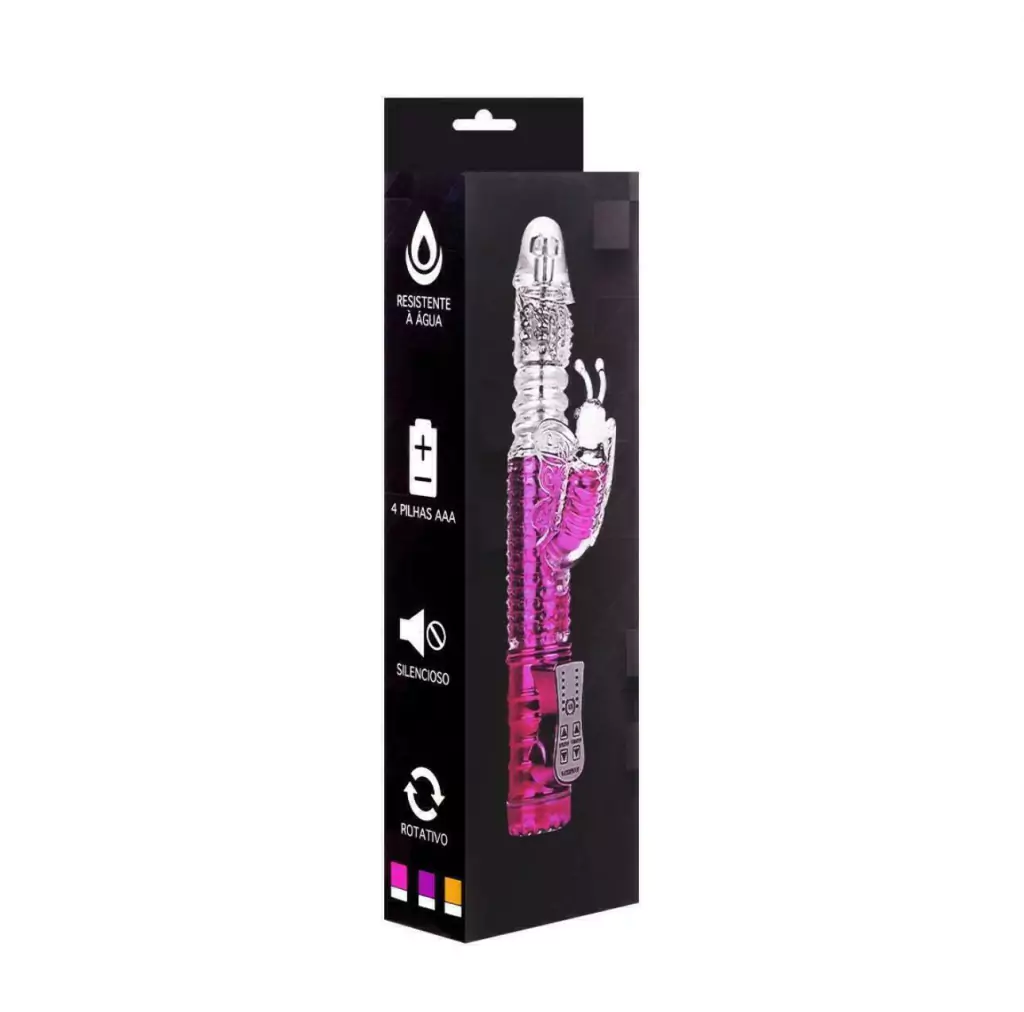 Vibrador Rotativo Sobe e Desce Butterfly - 23 x 3,5cm - Vipmix. Descubra uma nova dimensão de prazer com o Vibrador Rotativo Sobe e Desce Butterfly da Vipmix. Este vibrador inovador combina movimentos de vai e vem com rotação, proporcionando uma estimulação completa e personalizada. Equipado com um estimulador clitoriano em formato de borboleta, o vibrador oferece 36 variações de vibração, 6 velocidades de rotação e um botão independente para controle de giro reverso, garantindo uma experiência única e intensa.